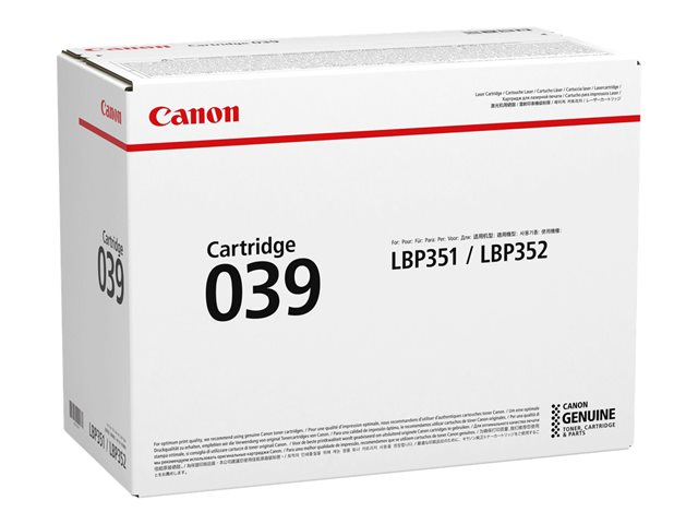 The Canon 039 toner cartridge is an essential supply for those seeking efficiency and quality in their printing tasks. With a generous duty cycle of 11,000 pages, it is perfectly suited for both high-volume office printing and the occasional home project. As an original product from Canon, it ensures compatibility with your Canon printer, ensuring smooth operation and high-quality prints. The advanced laser technology employed in this cartridge not only produces sharp, clear text but also contributes to the longevity of your printer by maintaining consistent quality over thousands of prints.