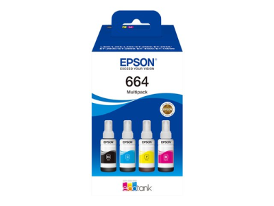 Epson EcoTank 664 - 4-pack - svart, gul, cyan, magenta - original - blekkrefill - for Epson L380, L395, L495; EcoTank ET-2650, L1455, L656; EcoTank ITS L3050, L3060, L3070