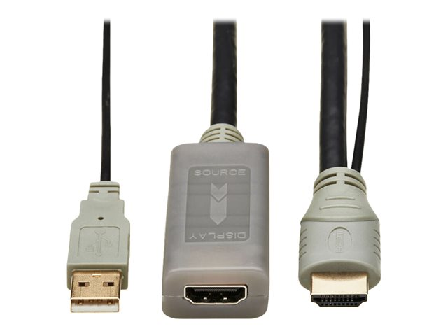 Eaton Tripp Lite Series HDMI Extension Cable with Active Repeater (M/F), 4K 60 Hz, HDR, 4:4:4, HDCP 2.2, 10 ft. (3.1 m), TAA - HDMI-forlengelseskabel med Ethernet - TAA-samsvar - USB, HDMI hann til HDMI hunn - 3.1 m - grå, svart - støtte for 4K 60 Hz (3840 x 2160), aktiv forsterker, 3D-videostøtte, gullbelagte kontakter