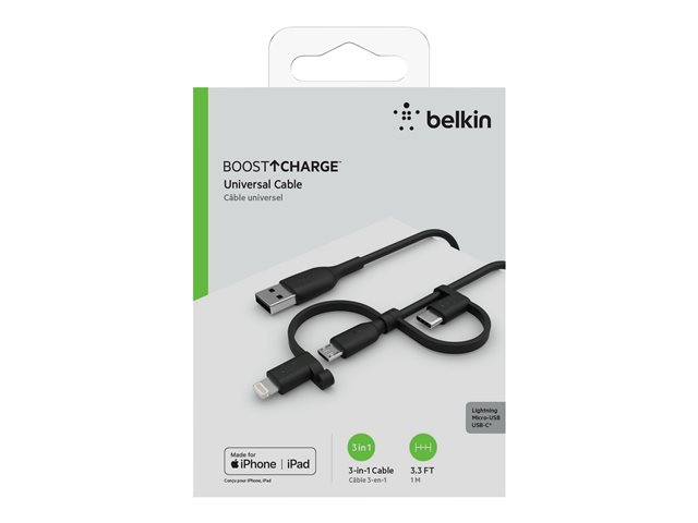 Belkin BoostCharge Universal - USB-kabel - USB hann til Micro-USB type B, Lightning, USB-C hann - 1 m