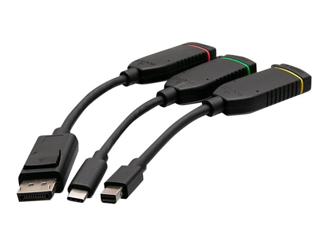 | Antall inkludert x Type | Video adapter - Mini DisplayPort (hann) til 19-pin HDMI type A (hunn) Video adapter - 20-pins DisplayPort (hann) til 19-pin HDMI type A (hunn) Video adapter - 24-pins USB-C (hann) til 19-pin HDMI type A (hunn) |