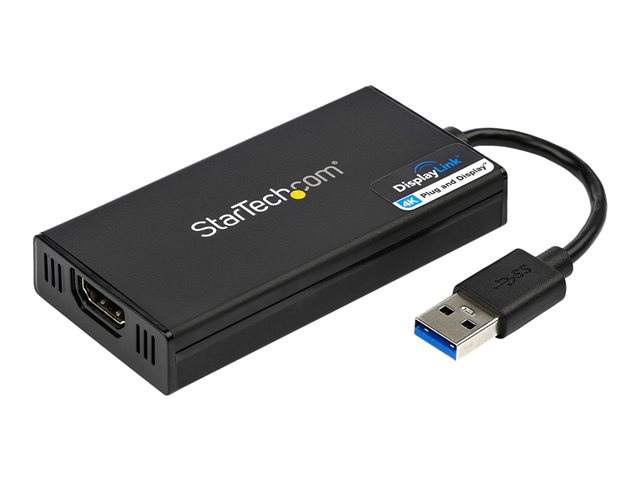 StarTech.com USB 3.0 to HDMI Adapter, 4K 30Hz Ultra HD, DisplayLink Certified, USB Type-A to HDMI Display Adapter Converter for Monitor, External Video & Graphics Card, Mac & Windows - USB to HDMI Adapter (USB32HD4K) - Adapterkabel - TAA-samsvar - USB-type A hann til HDMI hunn - 20 cm - svart - USB-strøm + lyd - for P/N: HDDVIMM3, HDMM12, HDMM15, HDMM1MP, HDMM2MP, HDMM3, HDMM3MP, HDMM50A, HDMM6, HDPMM50