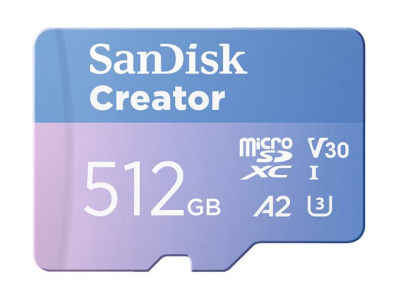 SanDisk Creator - Flashminnekort (microSDXC til SD-adapter inkludert) - 512 GB - A2 / Video Class V30 / UHS-I U3 - microSDXC UHS-I