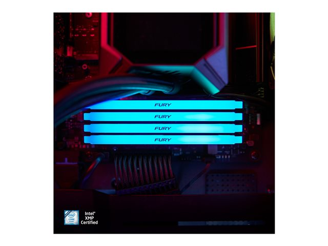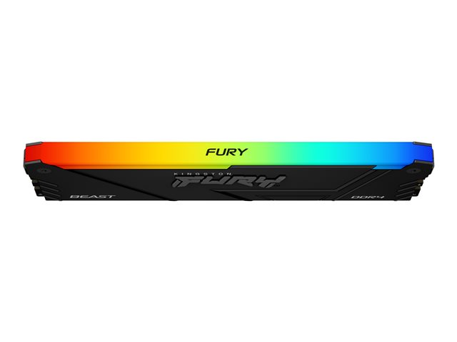 Kingston FURY Beast RGB delivers a boost of performance and style with high speeds, aggressive styling and RGB lighting that runs the length of the module for smooth and stunning effects. It features Plug-and-Play automatic overclocking at high speeds and is both Intel XMP-ready and ready for AMD Ryzen. FURY Beast RGB stays cool with its stylish, low-profile heat spreader.