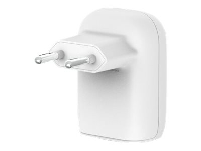Power an iPhone or Samsung device with the 37W Dual Wall Charger. It's packed with PPS technology so you can fast charge a compatible device through the 25W USB-C port while powering another one with the 12W USB-A port. This charger is USB-C PD 3.0 certified, delivering fast charging speeds of up to 0-50% in 25 minutes. It's designed with a compact footprint that fits any environment. Perfect for homes or offices that have a variety of tablets and smartphones.