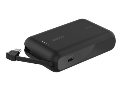 The Belkin BoostCharge power bank is designed to keep your devices charged and ready to go. With a substantial battery capacity of 10,000 mAh, this power bank provides reliable power delivery to your tablet and cellular phone. It features an integrated USB-C cable that allows for easy connectivity, eliminating the need to carry extra cables. The power bank supports fast charging technology, delivering up to 20 W to ensure your devices are charged quickly and efficiently.