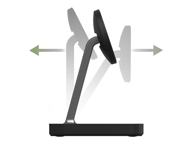 Magnetic Latch+ ladestativ og Pad+ lar deg lade telefonen og hodetelefonene på kort tid. Stativet holder enheten i stående eller liggende modus og leverer opptil 7,5-15 W trådløs kraft. Så du kan se TV-programmer, videochatte eller skanne meldinger mens telefonen er magnetisk festet til snap+-stativet og nettbrettet. Det er til og med et dedikert sted å lade AirPods.