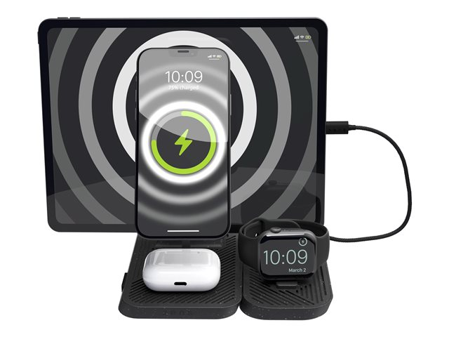ZENS 4-i-1 trådløst ladestativ er en allsidig løsning for lading av flere enheter samtidig. Med en utgangseffekt på 30 W kan den effektivt lade et nettbrett, en mobiltelefon, en smartklokke og trådløse øretelefoner samtidig. Den modulære designen gjør det enkelt å justere med opptil tre utvidelser, noe som sikrer kompatibilitet med ulike enheter og ladebehov.