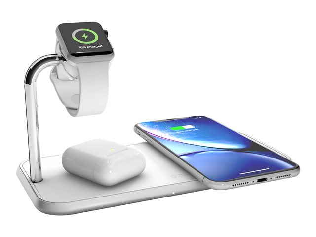 The Dual+Watch Aluminium Wireless Charger is designed to fast-charge a smartphone, the AirPods (or second smartphone) and an Apple Watch simultaneously. It has a total output of 20W, supports Apple Fast Charge at 7.5W and comes with a universal power adapter. This three-in-one charger is the ideal charger to wirelessly recharge all your Apple devices at the same time.