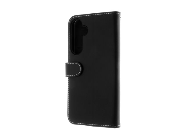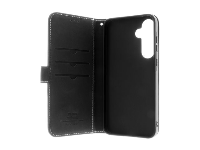 Insmat Exclusive - Baksidedeksel for mobiltelefon - ekte skinn, kartong+papir+aluminiumsfolie, termoplast-polyuretan (TPU), bomullssting - svart - for Samsung Galaxy A35 650-3230