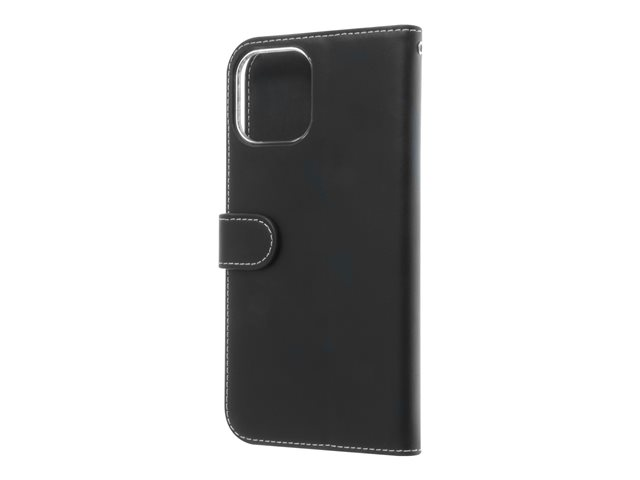 Insmat Exclusive Flip Case - Lommebok for mobiltelefon - papir, kartong, lær, polykarbonat, bomull, aluminiumsfolie - svart - for Apple iPhone 12 Pro Max