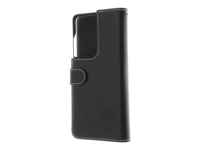 Insmat Exclusive Flip Case - Lommebok for mobiltelefon - papir, kartong, lær, aluminiumsfolie, termoplast-polyuretan (TPU) - svart - for Samsung Galaxy S21 Ultra 5G