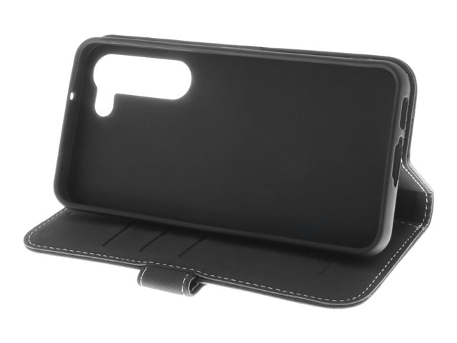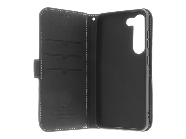 Insmat Exclusive - Lommebok for mobiltelefon - ekte skinn, papir, polyuretan, kartong, bomull, aluminiumsfolie, bronse, termoplast-polyuretan (TPU) - svart - for Samsung Galaxy S23+