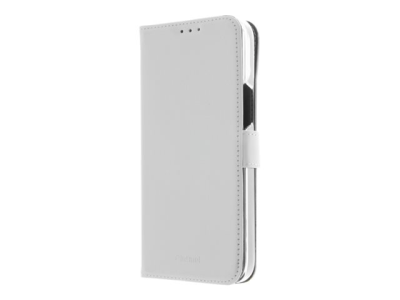 Insmat Exclusive - Lommebok for mobiltelefon - papir, kartong, lær, polykarbonat, bomull, aluminiumsfolie, bronse - hvit - for Apple iPhone 12, 12 Pro