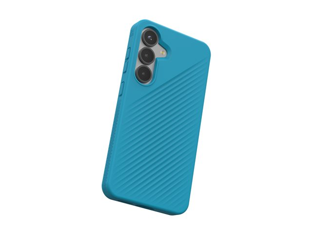 The ZAGG Luxe protective cover is designed for cell phones, offering drop protection from a height of up to 3 m. Made with a lightweight and slim profile, this back cover features a ripple pattern finish that provides a non-slip grip for enhanced handling. Its construction from 100% post-consumer recycled content reflects a commitment to sustainability while ensuring a protective case that supports wireless charging. Experience the blend of style, functionality, and eco-friendliness with this protective cover.