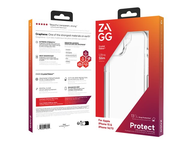 Zagg Crystal Palace - Baksidedeksel for mobiltelefon - blank - for Apple iPhone 13, 14, 15 702312612