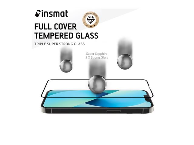 The Insmat screen protector provides protection for cellular phones, crafted from high-quality tempered glass with a 9H rating for impact resistance. This product features an easy installation process, complemented by a No-DUST installation frame and includes wet and dry cloths for a clean application. Designed to be full cover, it offers a dirt repellent coating that keeps the screen clear and enhances usability with its oleophobic surface that resists fingerprints and smudges. With triple reinforcement, this screen protector guards against everyday wear and tear and minimizes the risk of fractures from accidental drops. The sleek black frame seamlessly integrates with any device, ensuring that your phone maintains its appearance while benefiting from protection. This screen protector is an accessory for anyone looking to extend the life of their cellular device.
