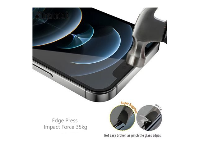 The Insmat screen protector offers durability and protection for cellular phones. Made from tempered glass with a 9H hardness rating, it ensures defense against dirt, impacts, and friction. Designed for easy installation, this accessory includes a No-DUST installation frame along with wet and dry cloths for a seamless application process. Its oleophobic coating helps keep the screen clean, making it a choice for those looking to maintain their device's condition.