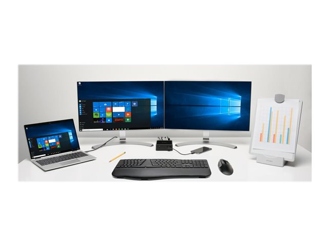 Kensington Pro Fit Ergo Wireless Mouse - Mus - ergonomisk - 5 knapper - trådløs - 2.4 GHz, Bluetooth 4.0 LE - USB trådløs mottaker - svart - løsvekt K75404EU