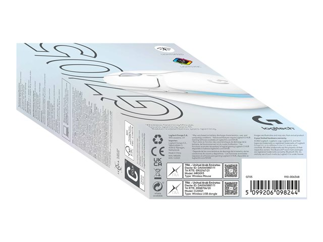 Logitech G G705 - Mus - små hender - 6 knapper - trådløs - Bluetooth - USB Logitech LIGHTSPEED-mottaker - hvit