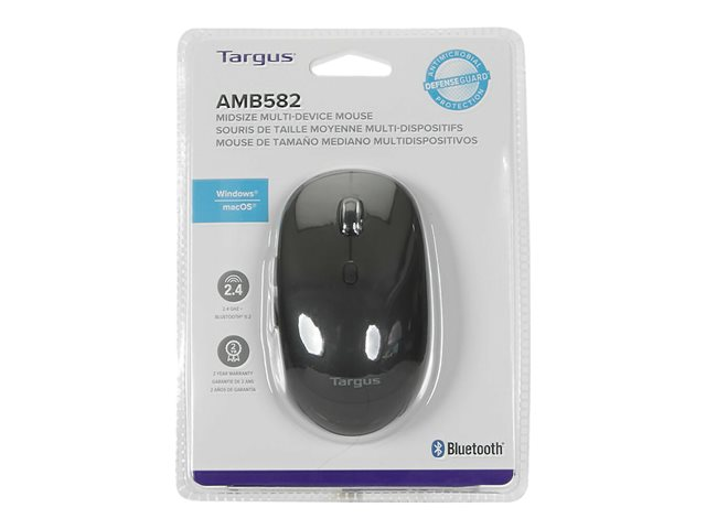 Targus Multi Device Midsize Comfort - Mus - antimikrobielt middel - trådløs - 2.4 GHz, Bluetooth AMB582GL