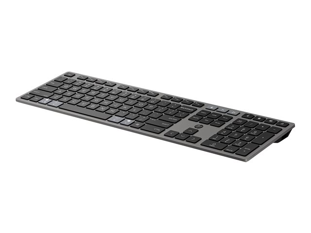 HP 725 - Tastatur - multi-enhet, oppladbar, drevet av SuperCapacitor - full size - trådløs - Bluetooth, 2.4 GHz - QWERTY - Pan Nordic - kveldningssvart