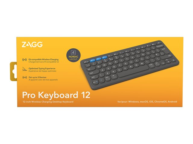 From the ergonomic design and spacing to the keystroke length and resistance, each ZAGG Pro Keyboard is engineered to reduce typing fatigue and provide a fast, comfortable, and efficient typing experience. Charge the ZAGG Pro Keyboards on a Qi-compatible wireless charging pad to ensure uninterrupted typing when you need it most. Qi charging eliminates the risk of a dead battery and keeps your workspace tidy and free from unnecessary cables. Users can also charge with the included Type-C cable. You can pair the ZAGG Pro Keyboards with up to three devices to seamlessly toggle between a phone, tablet, or computer from one keyboard. The keyboards have a Li-polymer battery that allows for three months of use before it needs recharging.