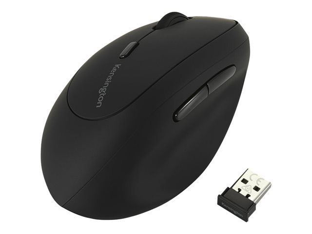 Kensington Pro Fit Ergo Wireless Mouse - Vertikal mus - ergonomisk - venstrehendt - 6 knapper - trådløs - 2.4 GHz