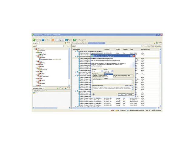 InfraStruXure Central provides an efficient, productive way for organizations to manage their company-wide NetBotz appliances. The centralized server allows the user to mass configure thresholds and firmware updates, and to deploy, view and graph data collected by NetBotz monitoring appliances. InfraStruXure Central's security and environmental monitoring solution can scale across large and diverse organizations.