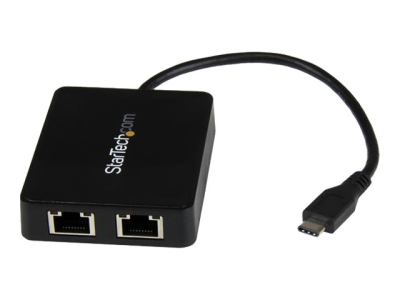 Use the USB-C port on your laptop to add LAN access with two Gigabit Ethernet ports and a USB 3.0 (Type-A) port. Now, you can add wired network access through the USB-C or Thunderbolt 3 port on your laptop or desktop computer, and connect to your USB 3.0 (Type A) devices with ease. This Gigabit Ethernet network adapter gives you access to two reliable GbE ports, and without having to install drivers. It's a great companion for your MacBook, Chromebook Pixel, Dell XPS 12, Dell Latitude 12 7000 Series 2-in-1 or another device that has a USB Type-C port.