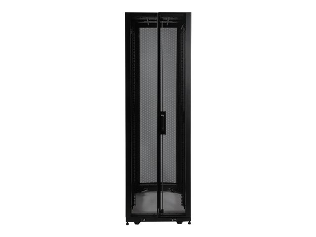 SmartRack enclosures are designed for secure, high density server and networking applications in IT environments. Designed with provisions to integrate cooling, power distribution and cable management, SmartRack enclosures make ideal homes for mission-critical equipment. Vendor-neutral square hole/cage nut mounting for guaranteed compatibility with all EIA-310-D compliant 19" equipment. Tool-less mounting slots allow quick installation of PDUs and vertical cable managers. Adjustable mounting rails include an easy-view depth index to eliminate time-consuming measurements. Lightweight modular doors and side panels provide safe, convenient service access. Integrated baying tabs facilitate combining enclosures in rows for standard data center baying applications. SmartRack enclosures hold up to 1360 kgs (3000 lbs.) and support cooling, cable management, power distribution and monitoring features that keep critical servers and network equipment operating nonstop. Perforated doors permit massive front to rear airflow that exceeds servers manufacturer requirements. Enclosures are fully compatible with hot-aisle / cold-aisle data center configurations.