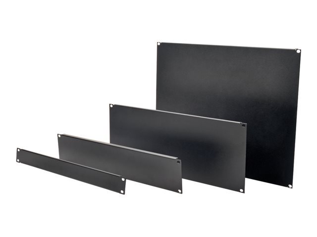 The SRXUPANEL Blanking Panel Kit fills unused spaces in your standard 19-inch rack. Not only does this give your rack a sleek, clean look, but it also protects your valuable rack equipment by improving airflow and cooling efficiency. By closing off unused rack openings, these blanking panels prevent hot air from recirculating through open spaces. This reduces operating costs, improves performance and provides longer lifespans for your equipment. Constructed from heavy-duty cold-rolled steel in a durable black powder-coat finish to match most rack enclosures, the SRXUPANEL includes four blanking panels in different sizes: 1U, 2U, 4U and 8U. This gives you the flexibility to close off up to 15U in rack space in different configurations as needed. Just attach the desired panels to the rack's front vertical mounting rails using the included hardware.