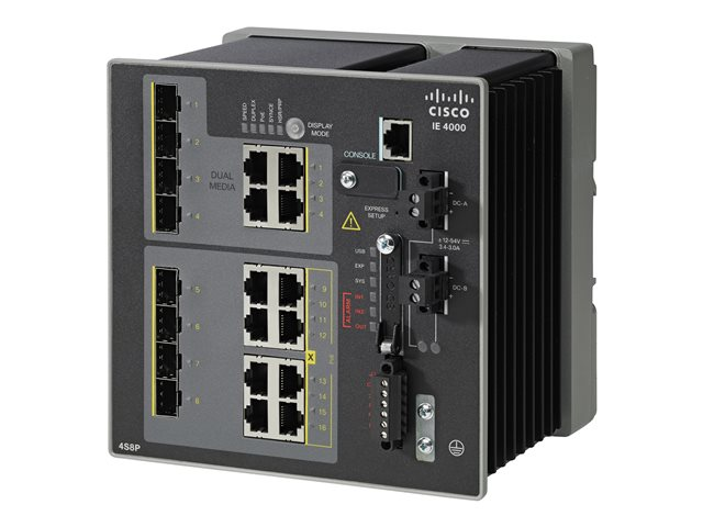 Cisco Industrial Ethernet 4000 Series - Switch - Styrt - 8 x combo Gigabit SFP + 4 x 10/100/1000 (PoE+) - DIN-skinnemonterbar - PoE+ - DC power - TAA-samsvar IE-4000-4GC4GP4G-E