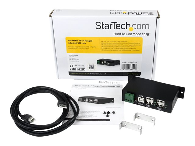 StarTech.com Rackmount USB 2.0 Hub - 4 Port Rugged Industrial USB 2.0 Hub - Hub - 4 x USB 2.0 - DIN-skinnemonterbar - DC-strøm - for P/N: ITB20D3250, MSDREADU2OTG, USB2HAB15, USB2HAB30AC, USB2HAB50AC, USB2HABM1, USB2HABM6RA