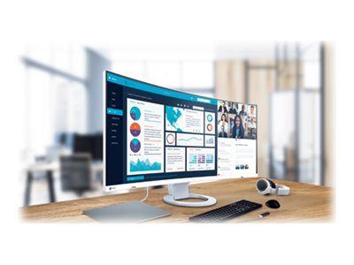 EV3895 er EIZOs ultrabrede, buede skjerm. Denne UWQHD+-skjermen (3840 x 1600) har USB Type-C-docking og LAN-funksjoner som passer til profesjonelle brukere.