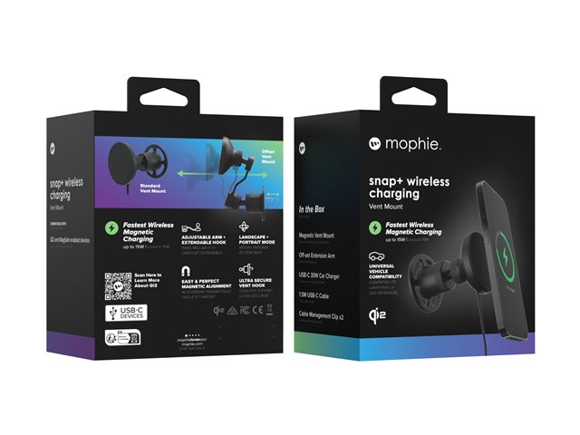 mophie snap+ - Trådløs ladeholder for bil - magnetisk, ventilasjonsfeste + AC-strømadapter - 15 watt 401313369