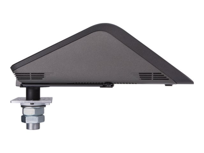 The TAA compliant CCS-UCA-SMK is a low-profile swivel mount accessory for the Crestron Mercury Tabletop Conference System. It provides a means for permanently mounting the device to a tabletop surface while retaining the ability to rotate it for optimal positioning. The swivel range can be customized using limit screws, with a maximum of approximately 180-degree rotation allowed. The swivel mount may be installed on any flat, level surface with a thickness of 1 inch (25 mm) minimum to 1-3/8-inch (35 mm) maximum. Wiring is routed through the center of the swivel mount, passing beneath the mounting surface for a completely hidden appearance.