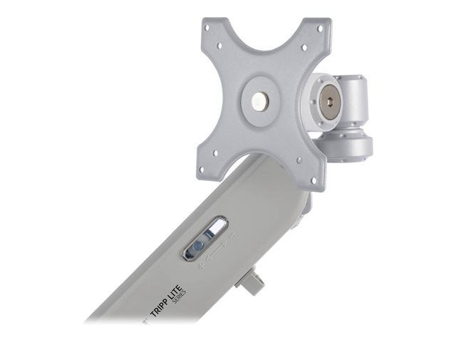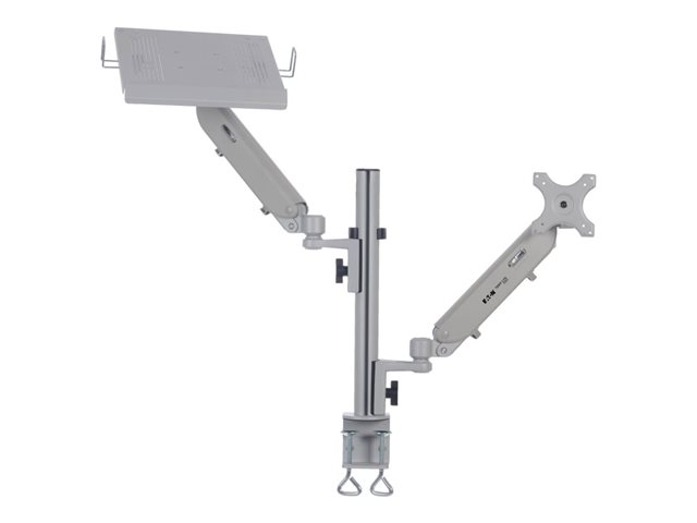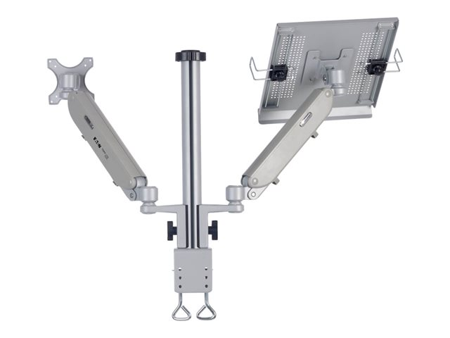 Eaton Tripp Lite Series Full-Motion Desktop Clamp er designet for å forbedre seeropplevelsen din. Enten det gjelder arbeid eller underholdning, gir dette monteringssettet fleksibilitet med 360° rotasjon og 180° svingbarhet, slik at du alltid har den beste plassen i huset. Det er konstruert av aluminium og stål og støtter enheter fra 17" til 32" med en vekt på opptil 6 kg, noe som gjør det til et allsidig alternativ for et bredt spekter av skjermer og bærbare datamaskiner. Det integrerte kabelhåndteringssystemet holder arbeidsområdet ditt ryddig, mens det medfølgende monteringsutstyret sørger for et problemfritt oppsett. Den er sertifisert i henhold til REACH- og RoHS3-standardene og TAA-kompatibel, og er en robust monteringsløsning og et miljøbevisst valg.