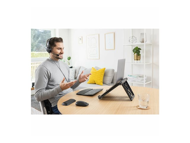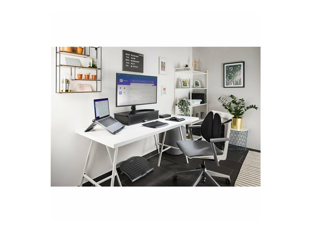 The Kensington SmartFit Easy Riser EQ is designed to enhance your laptop's performance and your comfort. This cooling stand not only prevents your device from overheating with its airflow design but also promotes an ergonomic workspace. With the ability to adjust to four different angles, it ensures that you can find the perfect viewing and typing angle, reducing the risk of neck and eye strain. The stand supports laptops up to 17 inches, making it versatile for a wide range of devices. Additionally, its commitment to sustainability is evident in its construction, made from 50% recycled post-consumer ABS. The anti-slip pads add an extra layer of security, ensuring your laptop stays in place. Whether you're working from home, in the office, or on-the-go, the Kensington SmartFit Easy Riser EQ is the perfect companion for anyone looking to enhance their laptop's cooling and their own comfort.