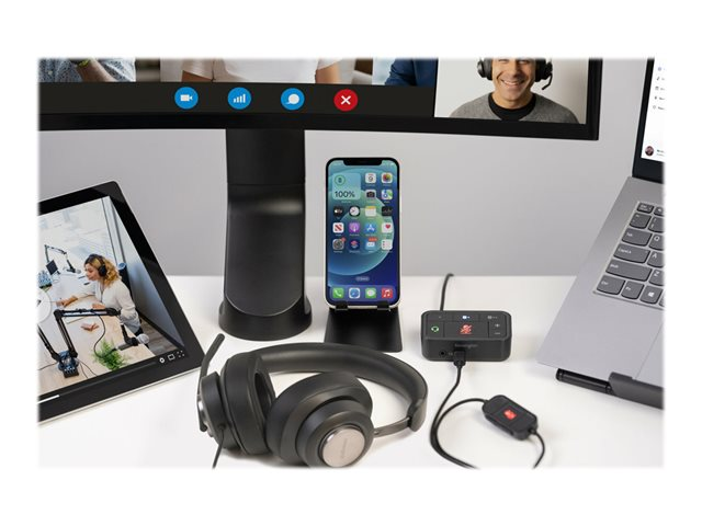 Kensington Universal 3-in-1 Pro Audio Headset Switch - Hodesettbryter for hodesett - pantone-svart C K83300WW