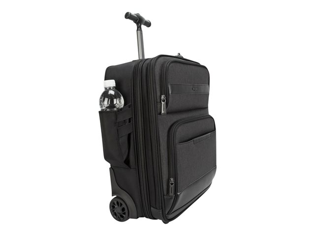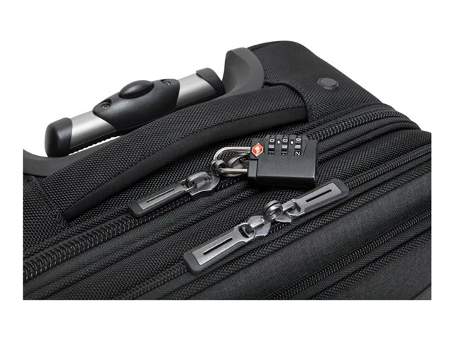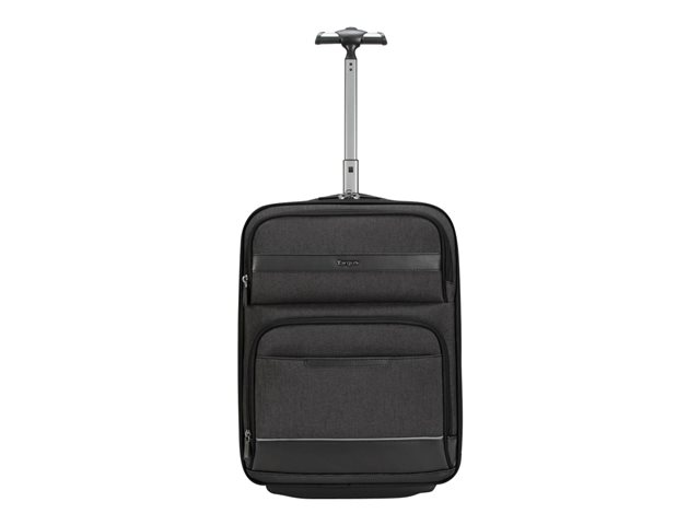 Get smart travel organization with the 12-15.6" CitySmart Compact Under-Seat Roller. For on-the-go professionals who value convenience and style, this hardworking roller provides the ideal space, convenience, and features for short haul trips. Safeguard your style with a separate clothing compartment. Protect your laptop in the drop-protective SafePort Sling. Retractable top and side handles help you hoist overhead or grab from under your seat with ease. Smooth-rolling and quiet wheels combined with a sturdy trolley pole let you maneuver masterfully. Park it with ease thanks to the large stand-up base. Eye-catching orange interior elements highlight the laptop SafePort Sling, accessories pouches and more, for easy visibility and added style.