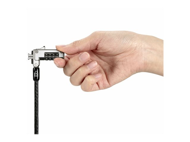 Ideal for thin laptops, the Slim Combination Ultra Cable Lock for Standard Slot offers our highest level of protection against cutting attempts, while allowing the laptop to lie flat and stable, and without blocking valuable ports. Extra-thick (6.5mm) six-foot carbon steel cable is sheathed in an anti-shearing plastic sleeve that resists cuts and protects surfaces. Features include a resettable four-number combination; one-handed operation; and Register & Retrieve for quick, secure, and easy combination retrieval. Meets or exceeds rigorous strength testing standards.